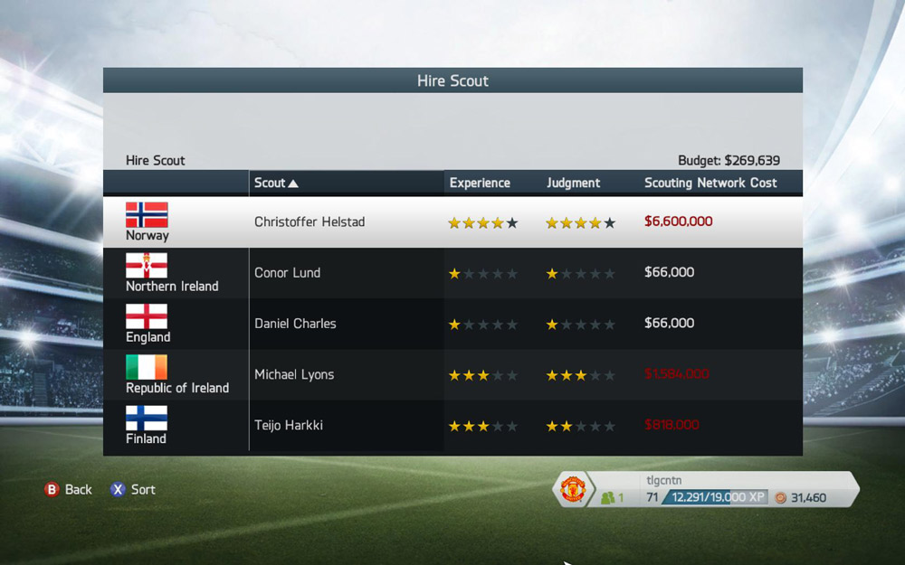Bu noktada genç oyuncuları keşfetmenin oyun içi ve oyun dışı yolları var. Oyun içinde yardımcılarınızı farklı ülkelere yollayarak belirlediğiniz filtre aralıklarında oyuncular bulmasını sağlayabiliyorsunuz. Bu işlemi yapmak için Scout Instructions menüsüne girip örneğin ilk kareyi tıklatıyorsunuz. Burada karşınıza çıkacak ekrandan istediğiniz oyuncu özelliklerini belirliyorsunuz. Geriye dönüp Global Transfer Network başlığına tıklatarak yine ilk kareye tıklatıyorsunuz. Ülke seçimini yapıp onayladığınız zaman daha önce belirlediğiniz aralıklar dahilinde seçtiğiniz scout size oyuncular bulmaya başlıyor size mail atarak bilgiler veriyor. Scout seçerken hire scout seçeneğiyle yeni ekip kiralayabiliyorsunuz. Ödediğiniz paraya bağlı olarak bulunan oyuncuların kalitesi de artış gösteriyor ya da benzer kalitede daha fazla oyuncu buluyorlar. Burada belirtmek istediğim ufak bir şey daha var. Genç oyuncu keşiflerinin verimsizliğinden şikayetçiyseniz ve 15- 16 yaşlarında potansiyeli yüksek oyuncu bulma işini biraz kolaylaştırmak istiyorsanız sizi store bölümüne alabilirim. Oyunun ana menüsünden Football Club sekmesine gelip Catalogue menüsünü açıyorsunuz. Üstteki sekmelerden Career’i seçerek arama seçeneklerini biraz daraltıyorsunuz. Scout Future Star seçeneğinin üzerine gelip satın aldığınız zaman (gerçek para ile değil oyun içi sanal puanla alınıyor) oyuncu arayan ekibiniz size yıldız potansiyeli olan bir oyuncu buluveriyor. Aktif etmek için ekstra gayret sarfetmenize gerek yok. Kataloğa girip Future Star’ı almanız yeterli. Ardından kariyer menüsüne girip oyunu oynamaya devam edin. Tabii oyuncu araştırmak için ekip yollamayı da unutmayın.