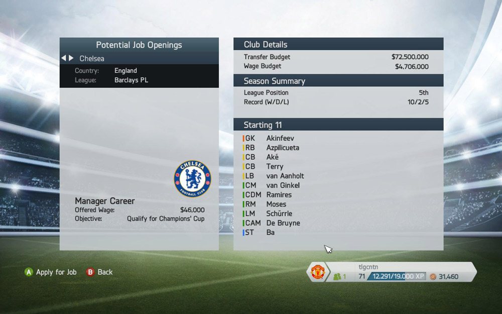 Kariyerimizi ana menüden başlattıktan sonra ilk olarak takım seçme ekranıyla karşılaşıyoruz. Hangi ligden hangi takımı seçeceğiniz tamamen size ait. Menajerlik ruhunun, alt liglerden nispeten umut vaat eden takımlarını seçip üst ligde başarılara koşturmak olduğuna inandığımdan İngilitere 2. liginden  Blackpool takımını seçtim. Siz ister Barcelona’yı seçin isterseniz benim gibi daha zayıf takımlarla yola başlayın. Burada kaderinizi etkileyecek en önemli unsur elinize verilen transfer bütçesi ve kadro derinliği olacaktır. Tahmin edebileceğiniz gibi düşük bütçeli takımlarla ilerlemek daha zor, Barcelona gibi devlerle ilerlemek ise çok daha kolay. Güçlü takımlarla uzun süre transfer yapma ihtiyacı bile hissetmezsiniz ki o zaman da menajer olmanın pek bir anlamı kalmaz. Söylediğim gibi, seçim sizin.