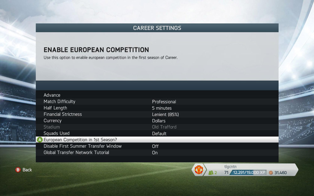 Takımımızı seçtikten sonra bir sonraki ekranda (Career Settings) oyun ayarlarını yapacağız. Fifa 13 de aynı modu oynayanların yapancı olmadığı bu ekran yeni başlayanlar için sürpriz seçenekler içeriyor olabilir. İlk bir kaç seçenekte oyun içi zorluğu, finansal katılığı ayarlıyoruz. Financial strictness yüzdesi ne kadar yüksek olursa takım bütçesi de sizi o kadar az zorluyor. Sözün özü, parasal sıkıntıyı olabildiğince az yaşamak istiyorum derseniz yüzdeyi de yükseltmeniz gerekiyor. squad used seçeneğinde ise default varsayılan takım kadrosuyla başlatırken, download latest seçeneği takımın güncel kadroyla başlamasını sağlıyor. Bildiğiniz gibi Fifa yıl içinde bir çok kez takım kadrolarını güncelliyor. Örneğin takımın kalecisi başka bir takıma transfer olduysa ve siz download latest seçeneğini seçerseniz o kaleciyi takımda görebilmeniz pek olası değil. Customized seçeneğinde ise oyunun edit bölümünden düzenlediğiniz takımla oyuna başlıyorsunuz. Gerçekçiliği fena halde baltalayan bu seçenek, oyundan daha fazla zevk almanızı da sağlayabilir. Disable First Summer Transfer Window seçeneği ile ilk transfer dönemini kapatabiliyorsunuz. Fifa 14 ile gelen bu yeni seçenek, oyunu biraz daha sert başlatmanız için eklenmiş. Aktif yaparsanız ilk transfer döneminde oyuncu alamazsınız. Zorluğu artırmak için etkili bir seçenek. Fifa 14 transfer anlatımı istiyorsanız da son seçeneği aktif etmeniz yeterli.