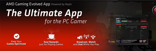 AMD Gaming Evolved, AMD ekran kartı sahipleri için geliştirilmiş bir yazılım. Son döneme damgasını vuran Raptr ile ortak geliştirilen yazılım, bilgisayarınızdaki oyunları algılayıp listesine ekliyor ve bu oyunlara girmeden en iyi grafik ayarlarını yapabilmenizi sağlıyor. Program bir nevi havuz sistemiyle çalışıyor. Tüm dünyadan Gaming Evolved kullanan oyuncuların sistem performanslarını topluyor, fps değerlerini ölçüyor ve herkes için ortalama ayarlar alıyor. Bu ayarları sizin donanımınızla karşılaştırıp sizin için en iyi seçenekleri oyunun ayarlar dosyasına uyguluyor. Tabii istemezseniz uygulamıyor !